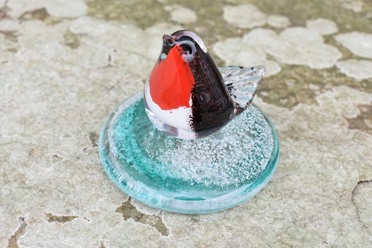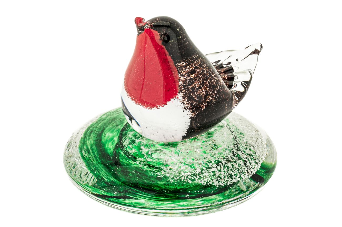 Once the order has been placed, we will send you an addressed special 'ash collection envelope' with clear instructions explaining how to extract and safely package your loved ones ashes. Once safely wrapped, please send back to us via a signed for service. After receiving the ashes, they are carefully incorporated into the molten glass and entwined with the colour of your choice. The piece is then encased with more glass and hand sculpted, preserving the ashes for ever inside the base. The robin is also hand sculpted from molten glass, using traditional tools at our glassworks.