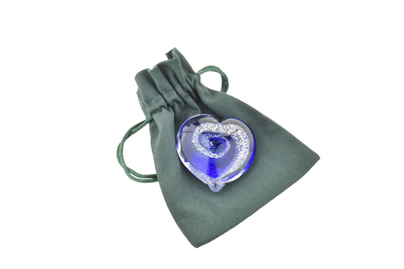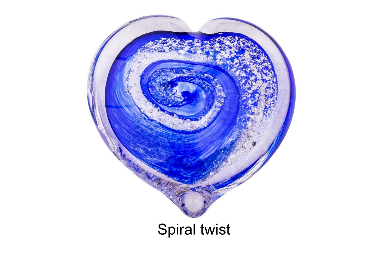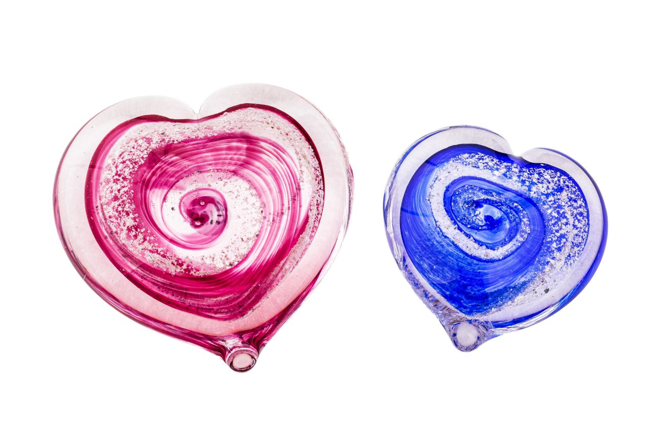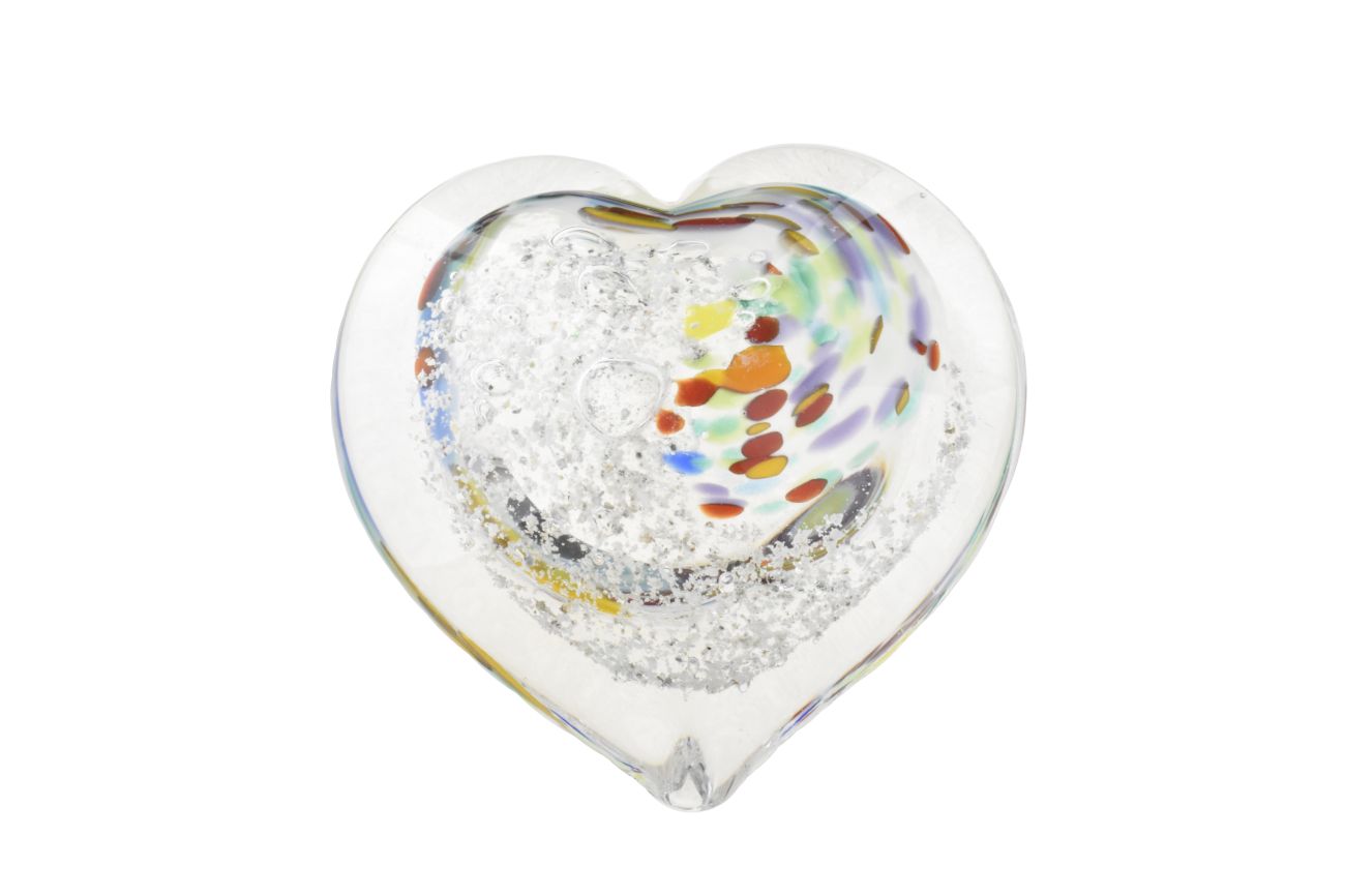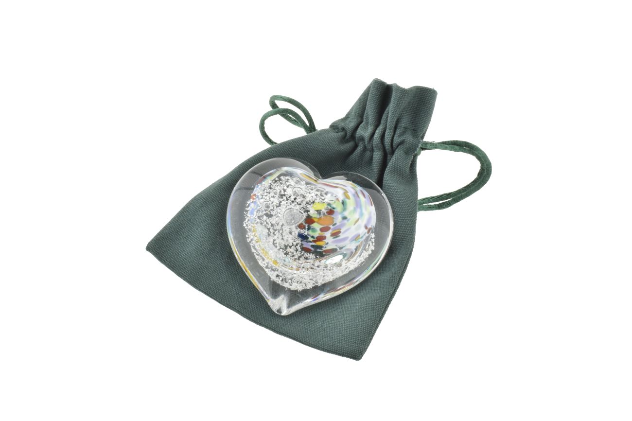 Once the order has been placed, we will send you an addressed special 'ash collection envelope' with clear instructions explaining how to extract and safely package your loved ones ashes. Once safely wrapped, please send back to us via a signed for service. After receiving the ashes, they are carefully incorporated into the molten glass and entwined with the colour of your choice. The piece is then encased with more glass and hand sculpted, preserving the ashes for ever inside the heart.