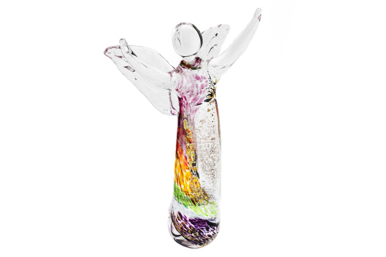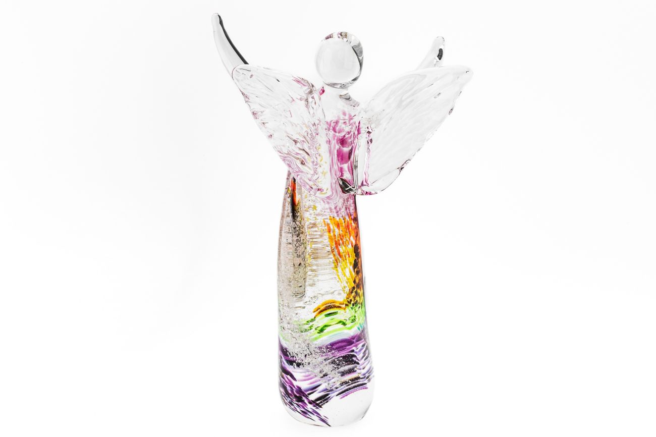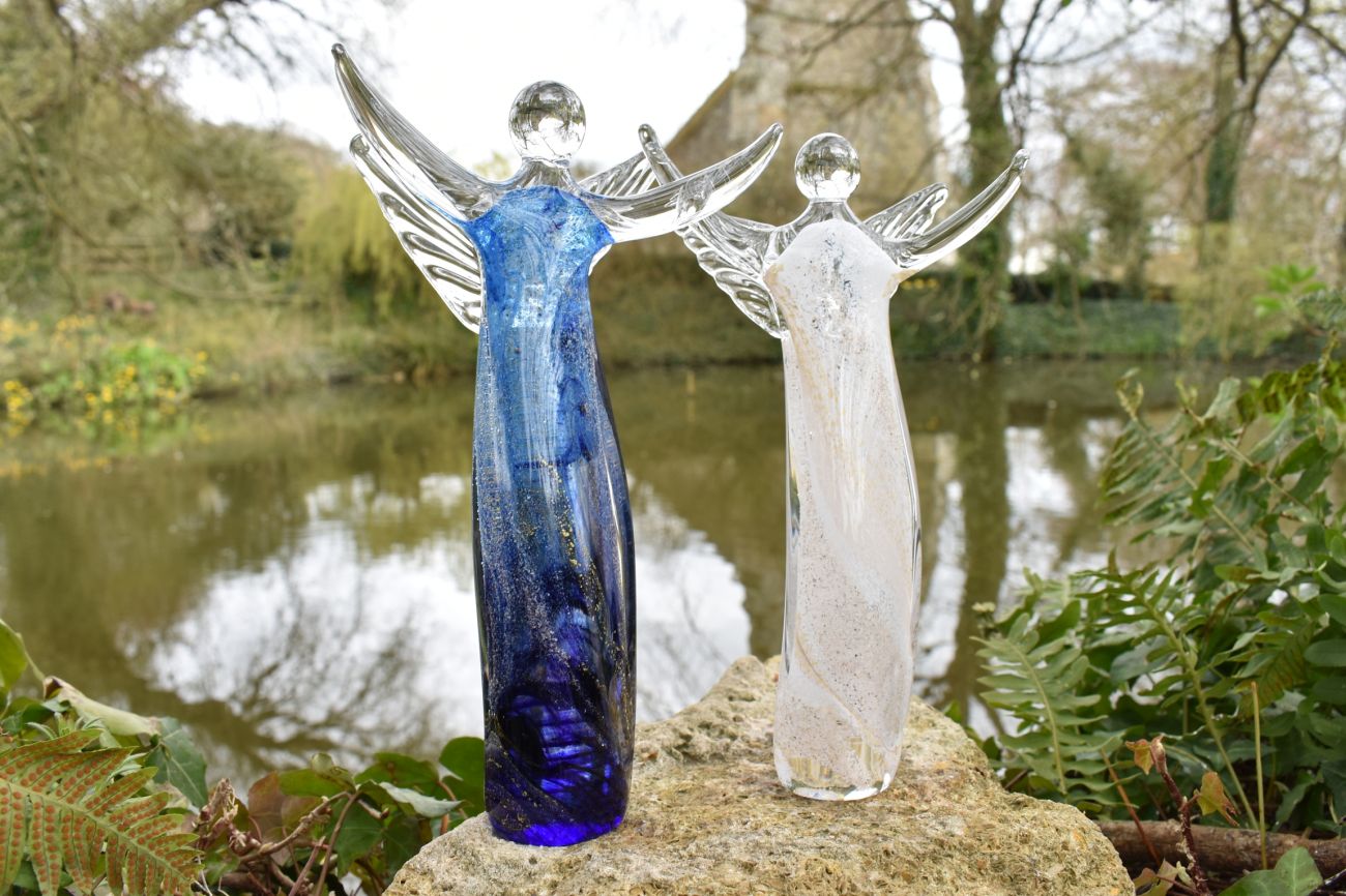Once the order has been placed, we will send you an addressed special 'ash collection envelope' with clear instructions explaining the process. Once safely wrapped, please send back to us via a signed for service. After receiving the ashes, they are carefully incorporated into the molten glass and entwined with the colour of your choice. The piece is then encased with more glass and hand sculpted, preserving the ashes for ever inside the angel.