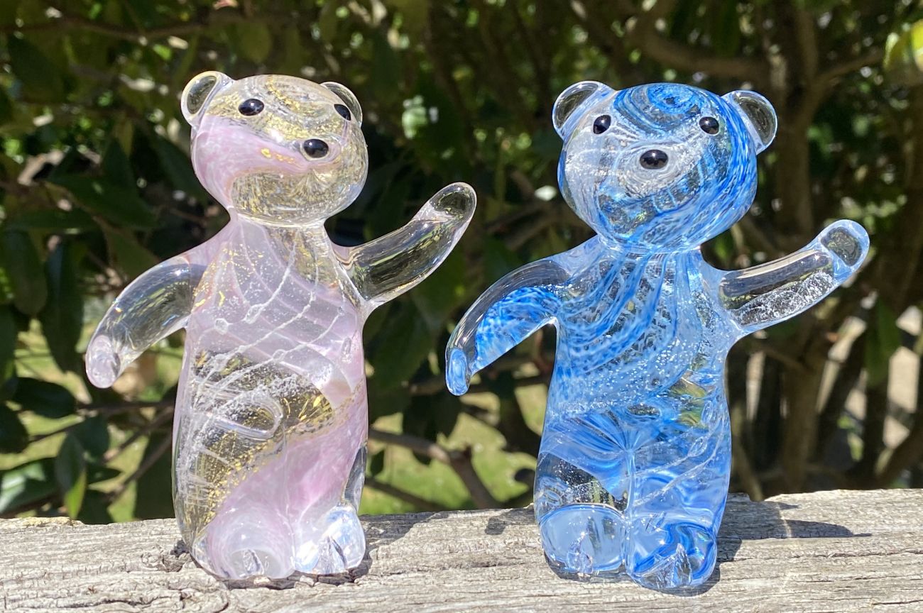 Remember your loved one with this very special memorial glass keepsake, bringing some comfort and a lasting memory. With great care and respect, the ashes are carefully encased inside the bear which can be in soft blue and silver leaf or soft pink and gold leaf.