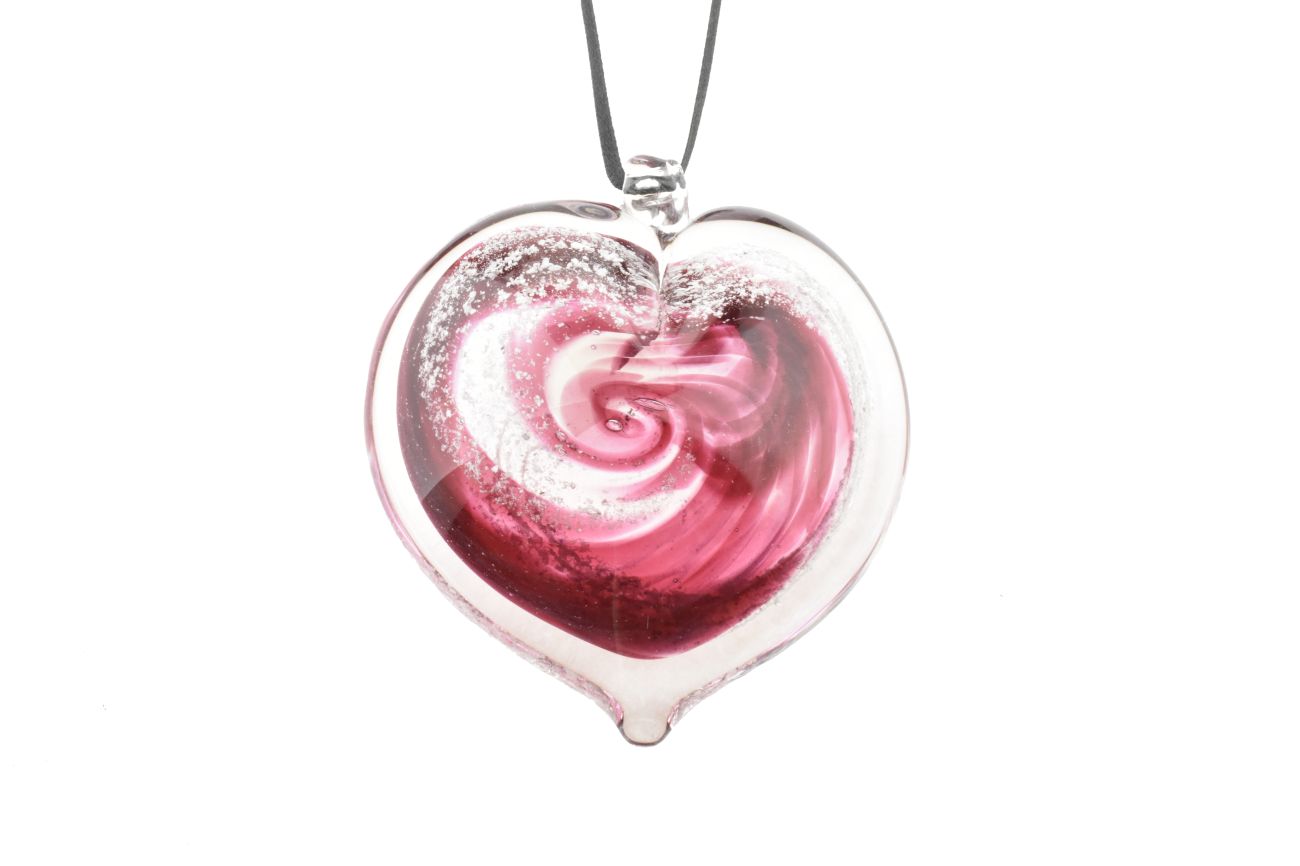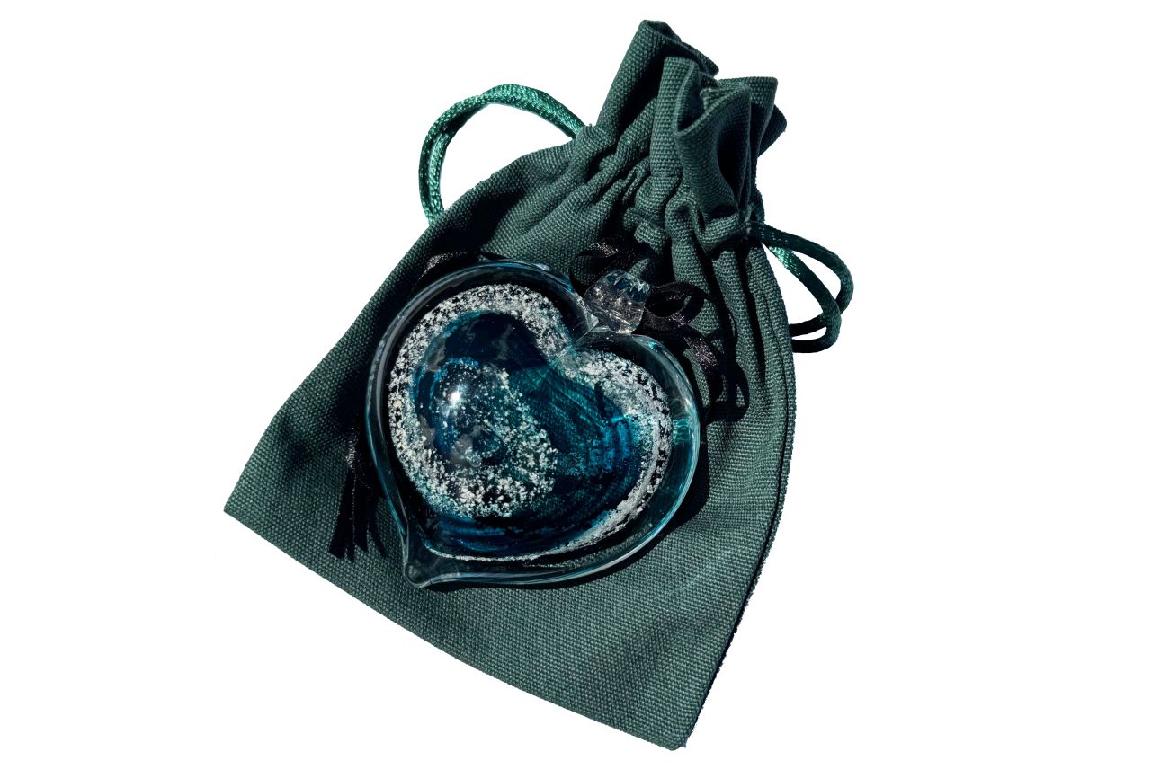Once the order has been placed, we will send you an addressed special 'ash collection envelope' with clear instructions explaining how to extract and safely package your loved ones ashes. Once safely wrapped, please send back to us via a signed for service. After receiving the ashes, they are carefully incorporated into the molten glass and entwined with the colour of your choice. The piece is then encased with more glass and hand sculpted, preserving the ashes for ever inside the heart.
