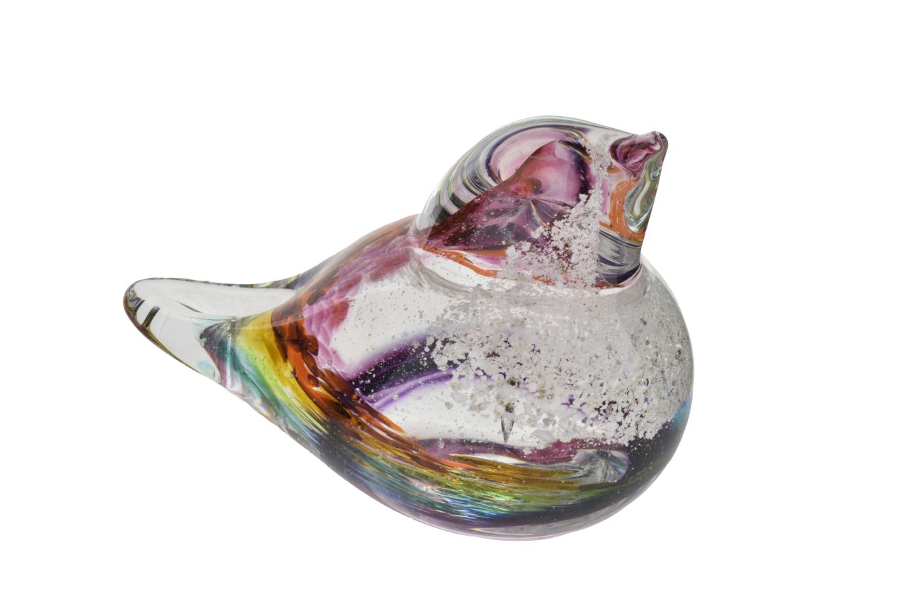 After receiving the ashes, they are carefully incorporated into the molten glass and entwined with the colour you have selected. The piece is then encased with more glass and hand sculpted, preserving the ashes for ever inside.