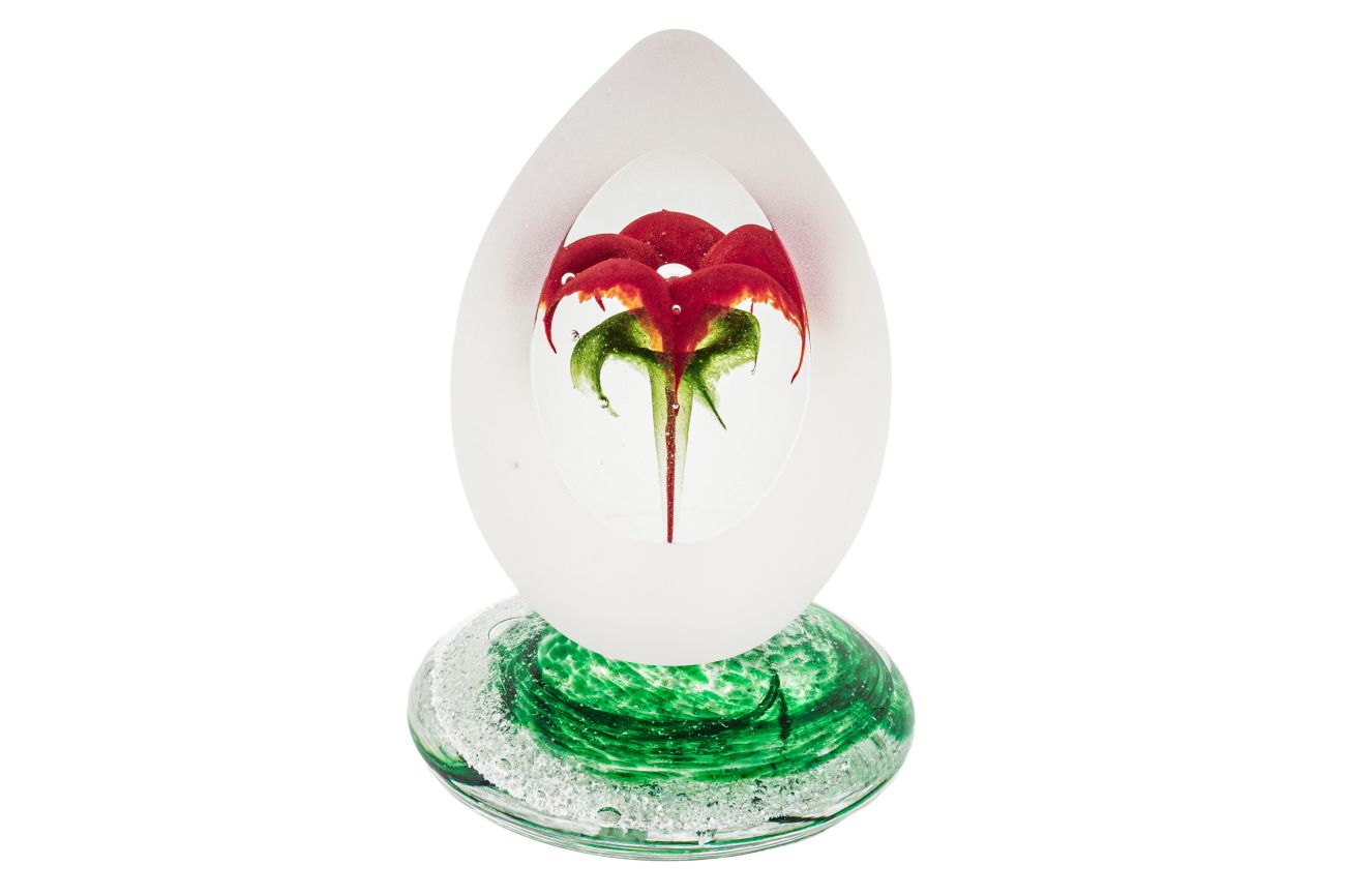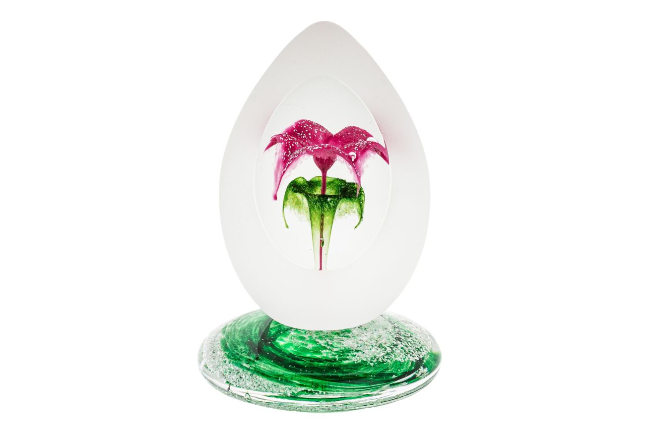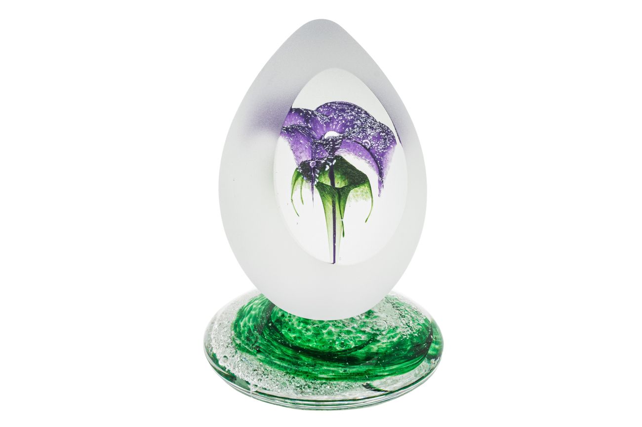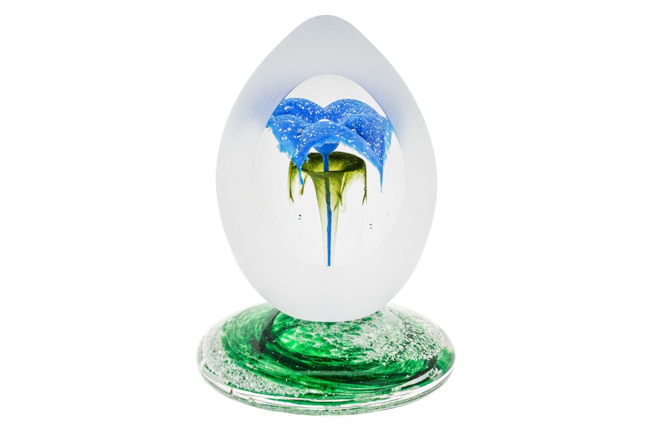 Art glass flower paperweight on base with encased ashes