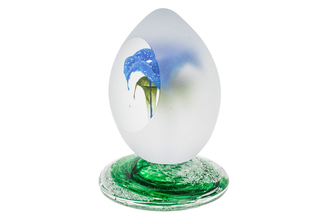 Once the order has been placed, we will send you a special 'ash collection kit', complete with a pre-paid Royal Mail Special Delivery Polylope Envelope. Clear instructions explain how to extract and safely package your loved one's ashes. Once safely wrapped and sealed, take them to a local post office and they will be sent to us. After receiving the ashes, they are carefully incorporated into the molten glass. The piece is then encased with more glass and hand sculpted, preserving the ashes for ever inside.
