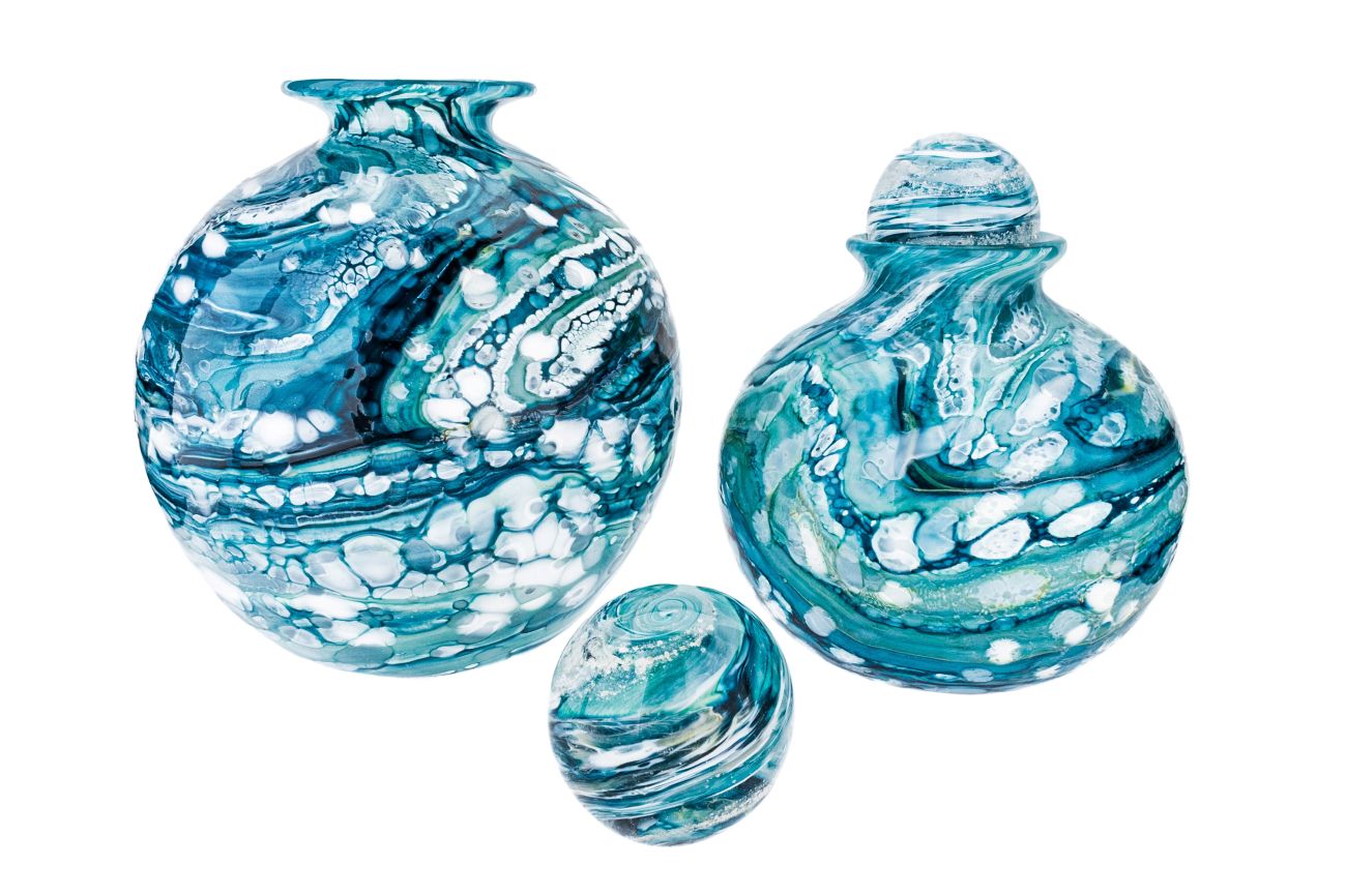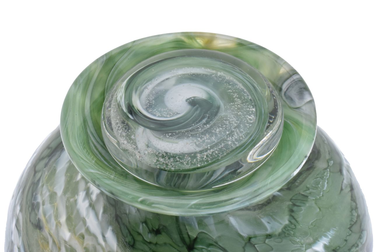 Once the order has been placed, we will send you a special 'ash collection kit', complete with a pre-paid Royal Mail Special Delivery Polylope Envelope. Clear instructions explain how to extract and safely package your loved one's ashes. Once safely wrapped and sealed, take them to a local post office and they will be sent to us. After receiving the ashes, they are carefully incorporated into the molten glass and entwined with the colour of your choice. The piece is then encased with more glass and hand sculpted, preserving the ashes for ever inside the stopper.